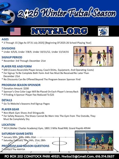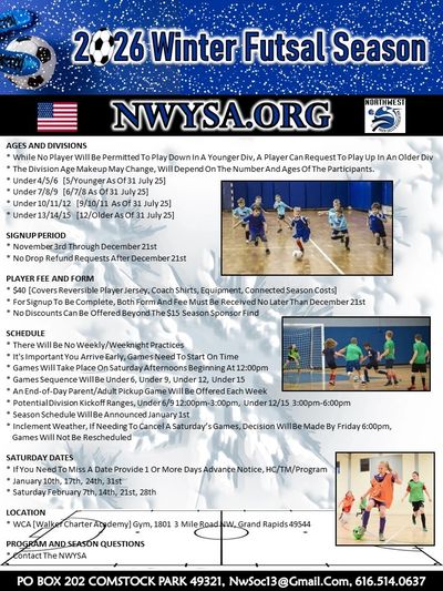 The Date Form And Fee Are Both Received Determines If Signup Is Early, Regular, Or Late. Regular May End Early And Late May Not Be Offered, If Teams And Divisions Fill Up. Before Signing Up August 11th Through September 7th, Check With The NWYSA To Ensure There Is An Open Team Spot In Your Child's Age Division