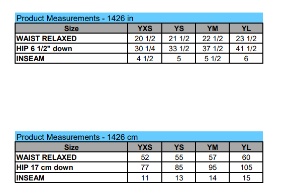 * See Below Sizing Charts
