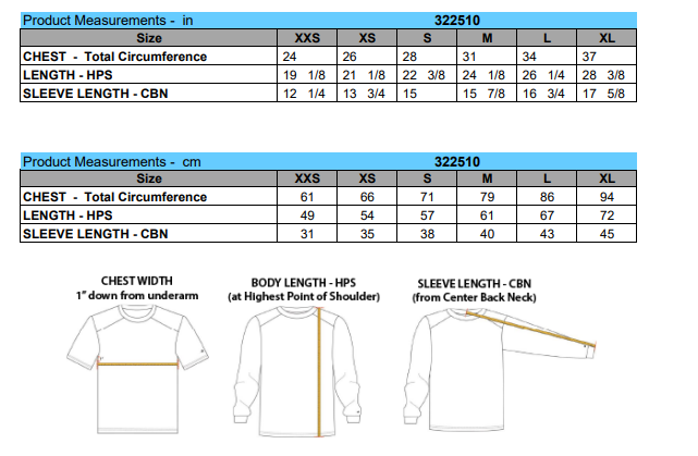 Team T-Shirt And Team Hoody Sizing Information